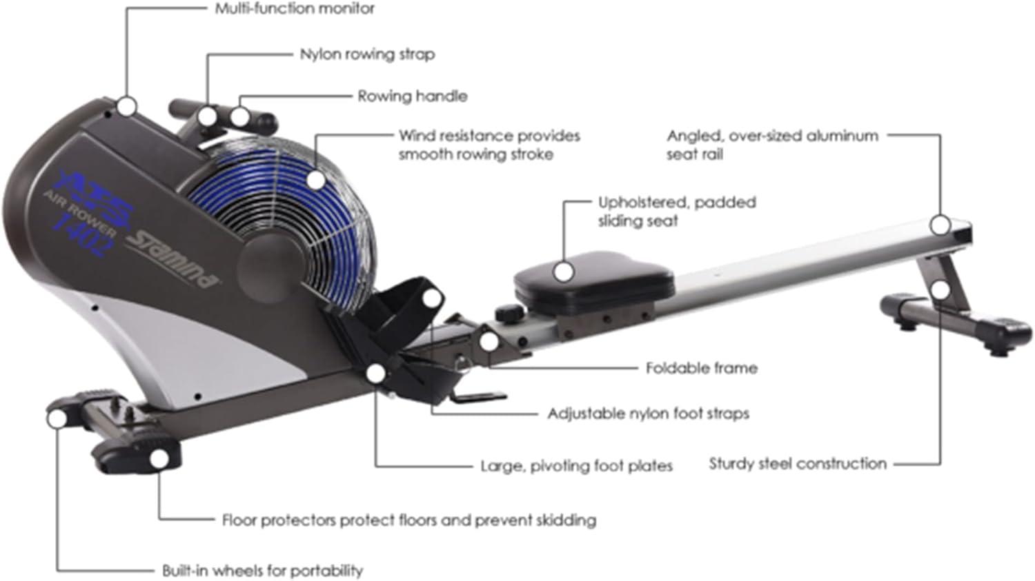 MATCHES YOUR PACE: The Stamina ATS Air Rower 1402 provides an all-in-one cardiovascular workout that burns calories, tones the upper and lower body, improves flexibility and boosts heart health. A carefully-designed combination of performance and comfort-enhancing elements help to ensure you attain the fitness results you desire.