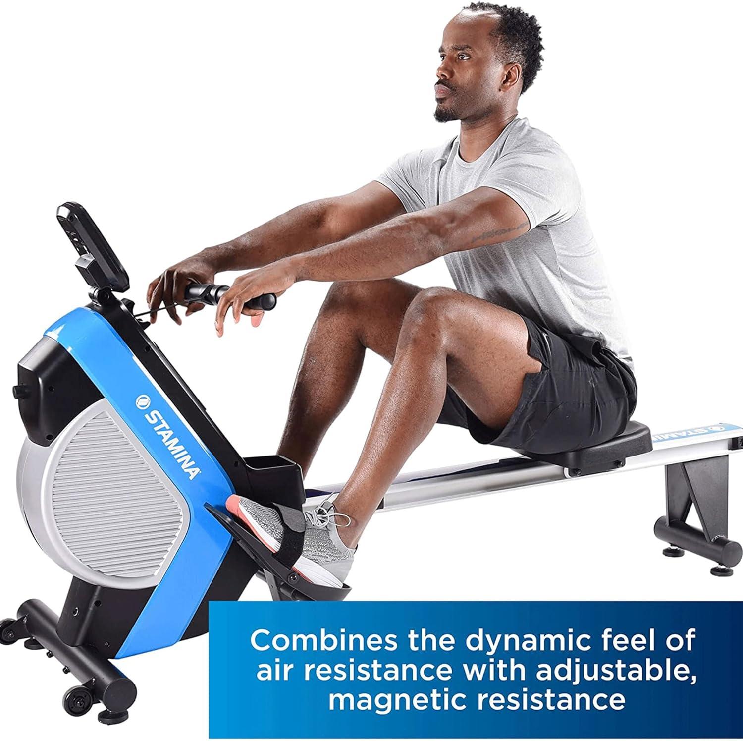 Stamina DT Plus Rowing Machine 1409 - Rower Machine with Smart Workout App - Rower Workout Machine with Dual Air and Magnetic Resistance - Up to 250 lbs Weight Capacity