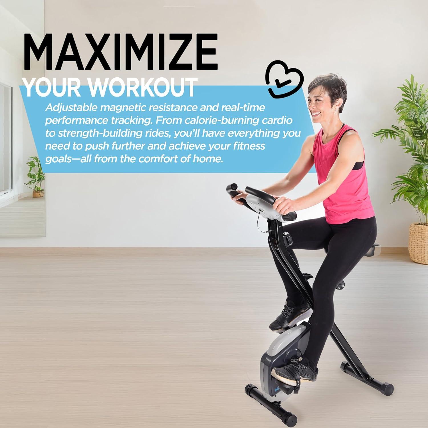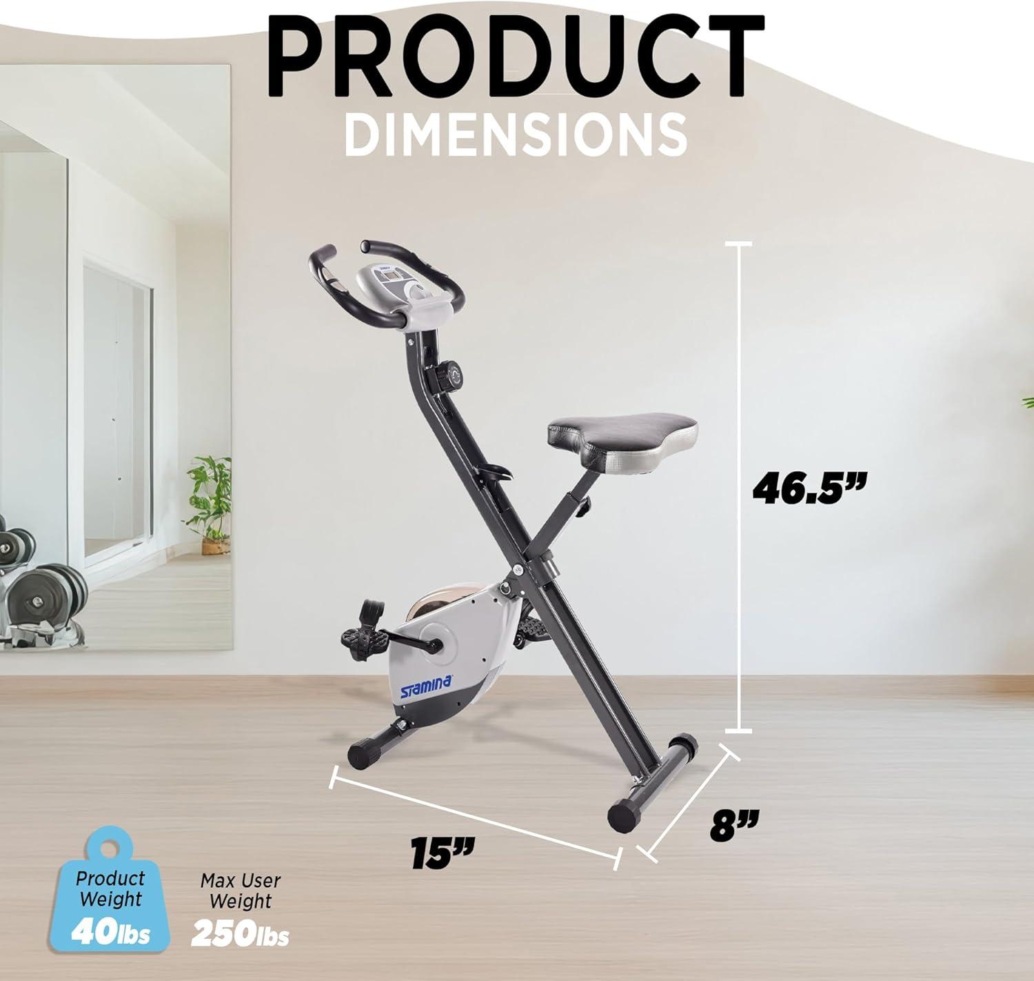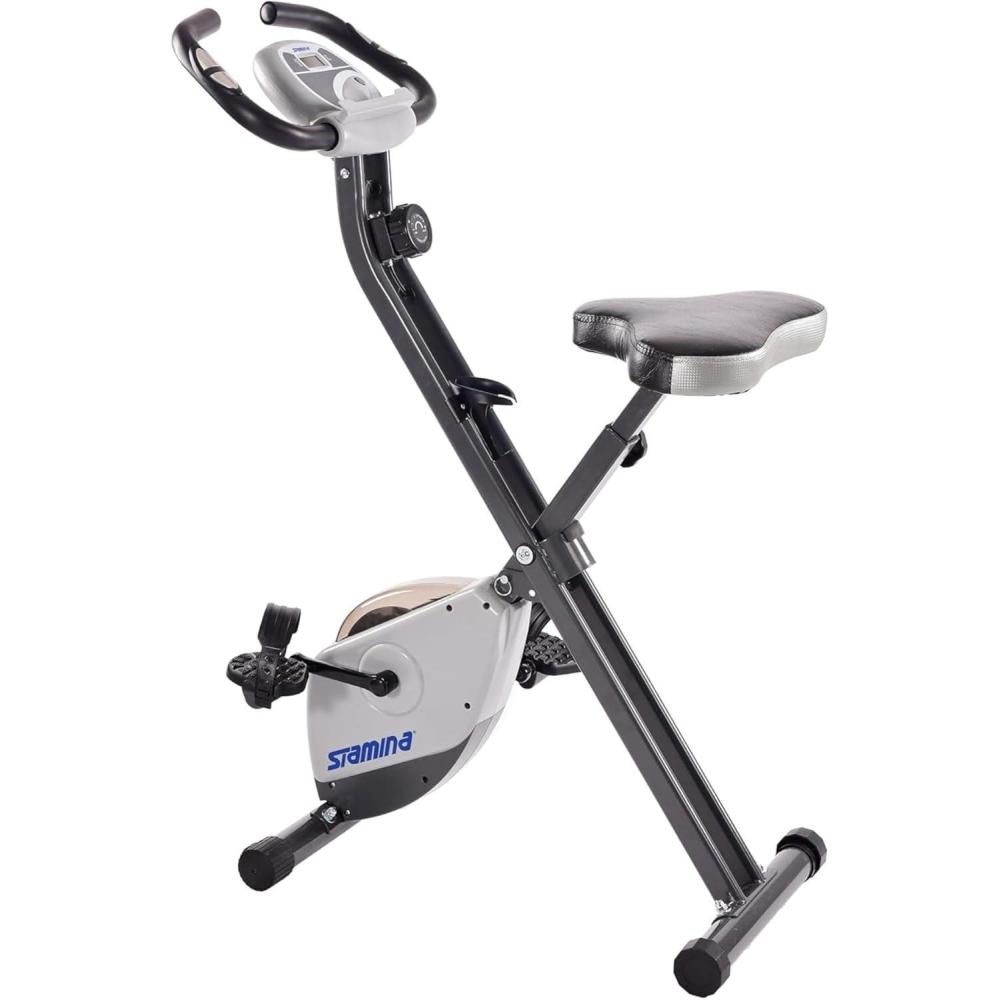 Stamina Folding Exercise Bike – Foldable Exercise Bike with Smart Workout App, Stationary Bike for Home Workout – Up to 250 lbs Weight Capacity(Gray)
