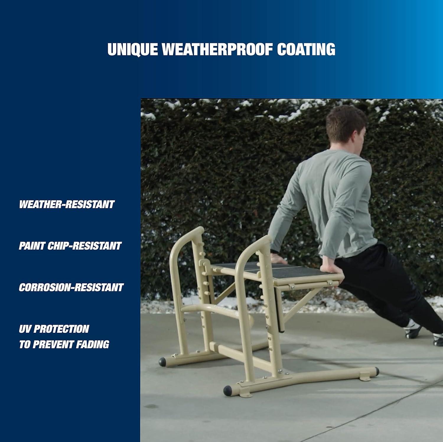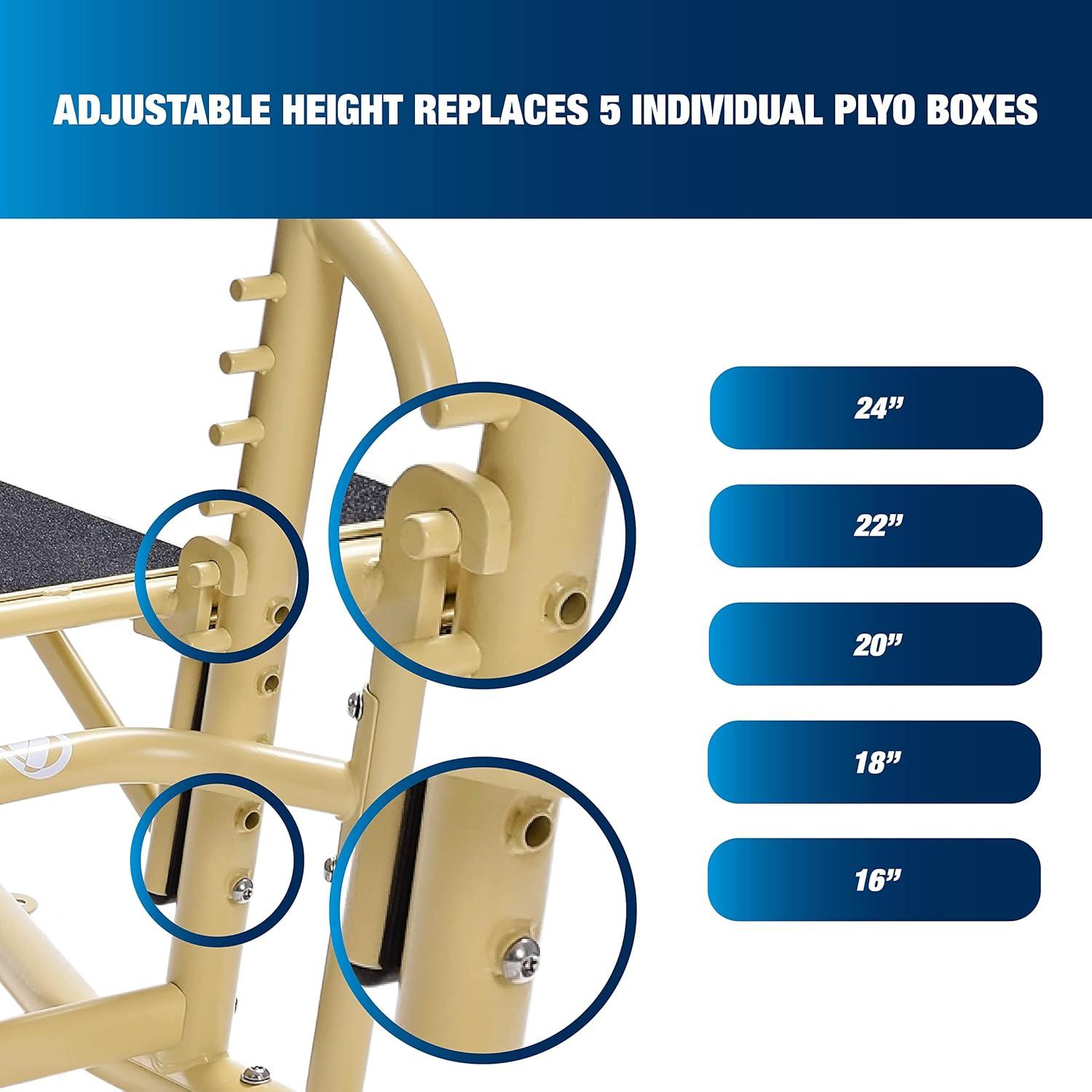 REPLACES 5 PLYO BOXES: The Stamina Outdoor Plyo Box eliminates the need for an entire set of plyo boxes, saving you space and money. Adjust between 5 height levels: 16”, 18”, 20”, 22”, and 24.”