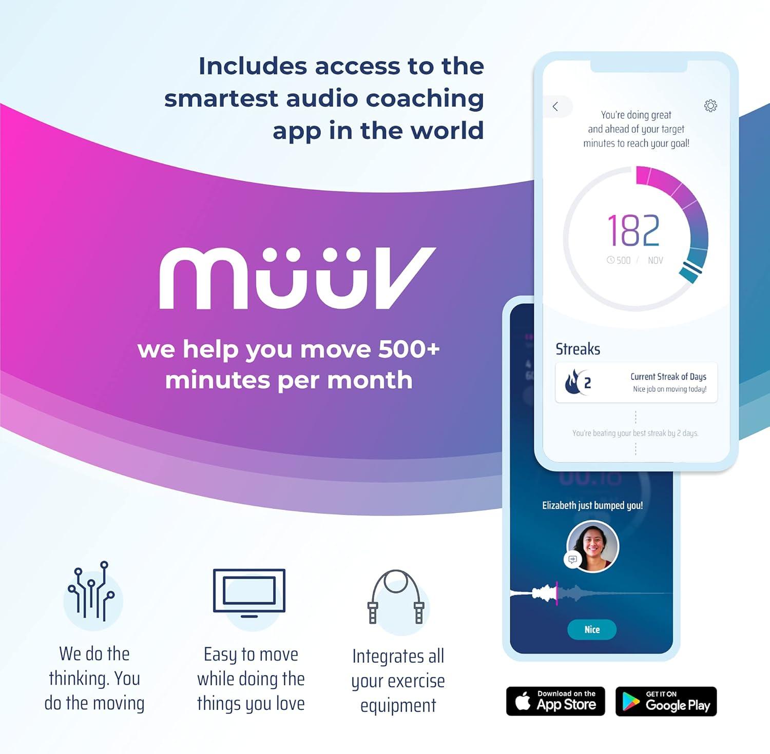 This jump boxes for training also includes free access to müüv, the smart audio coaching app. müüv helps you move 500+ minutes per month with the right mix of cardio, strength, and flexibility for a healthy and sustainable lifestyle. You'll get smart audio coaching that is personalized to you, progresses for you, and is fun to do. The all-in-one app comes with a follow-along assembly video, personalized workouts tailored to the fitness equipment you own, and an ad-free music listening experience from iHeartRadio. Download the müüv app on the Apple App Store or the Google Play store.
