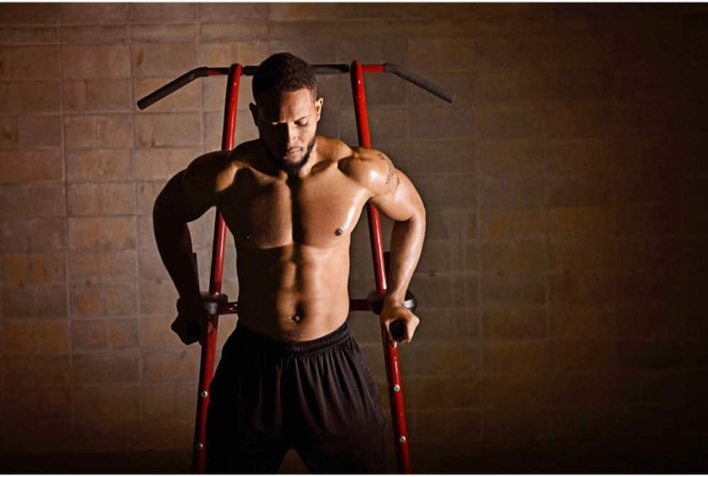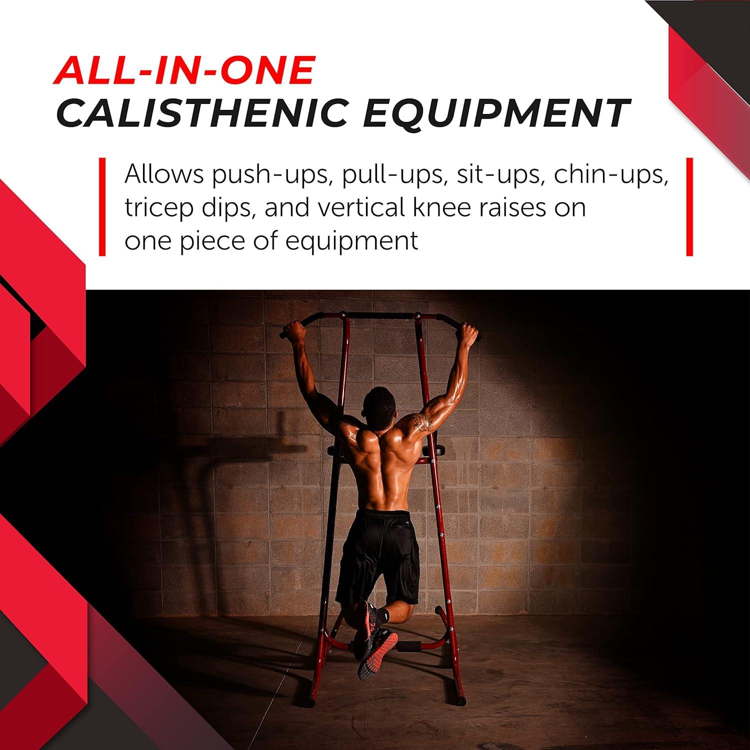 STABLE AND SPACE SAVING – The durable steel frame of this dip bar tower supports powerful workouts of users up to 250 lbs. Our pull up bar provides multiple workout stations that fit easily in any indoor or garage space.