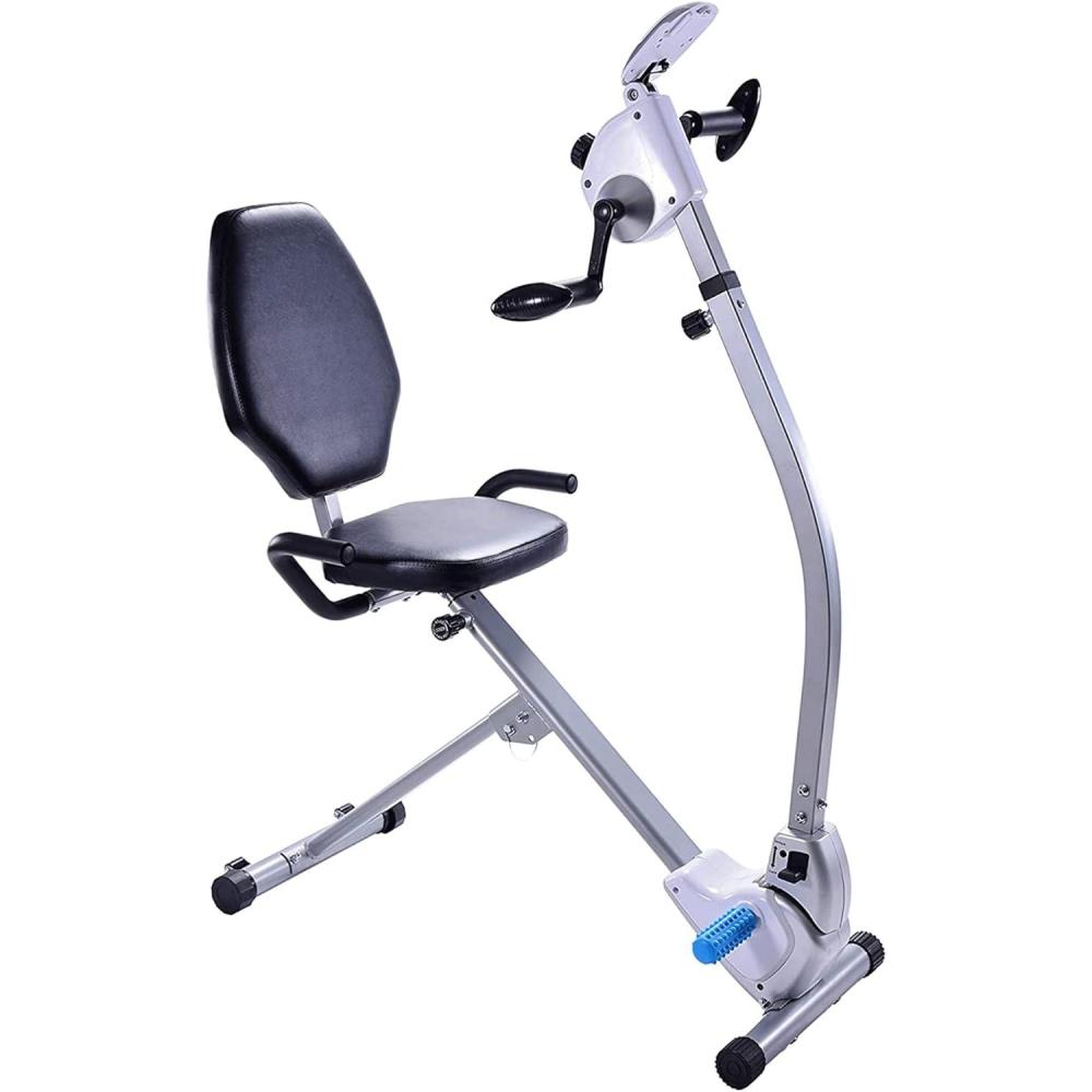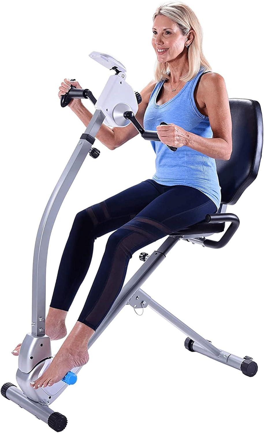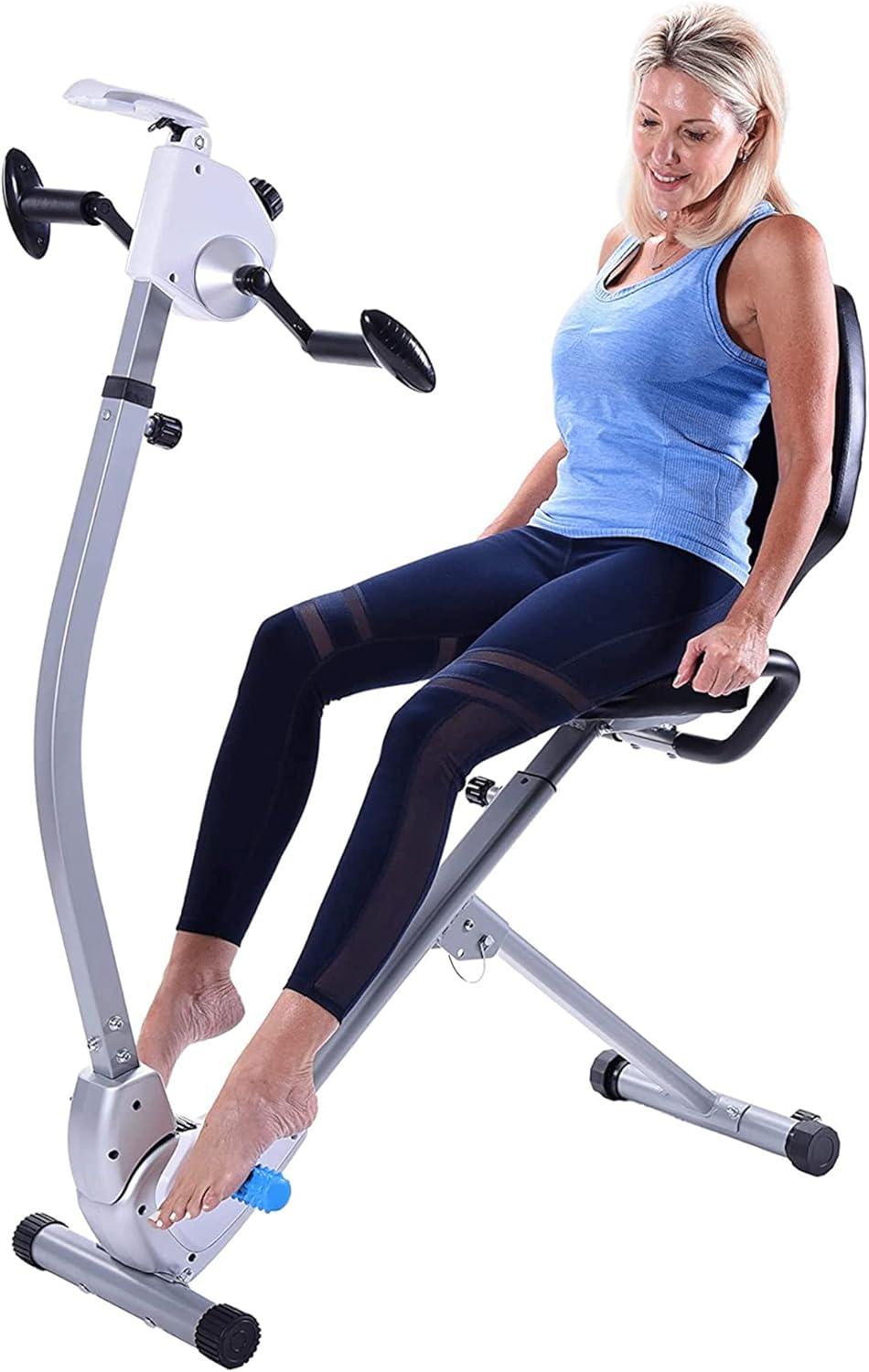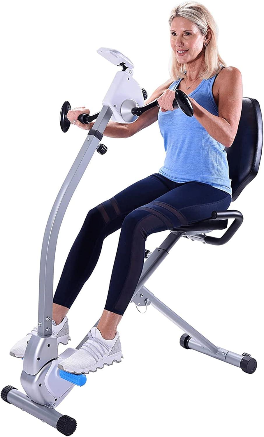 BUILD YOUR UPPER BODY: Improving mobility, toning the upper body and boosting heart health has never been easier with the Stamina Seated Upper Body Exercise Bike. Use the upper body hand pedals to work major muscle groups, including the shoulders, arms, back, chest and core. Incorporating upper-body exercise into your routine is an excellent way to boost heart health. Two different grip options help to promote proper alignment and ensure comfort. Easily adjust the resistance level by turning the dial to customize your workout. Keep track of your workout with the large, easy-to-read LCD monitor and view your time, speed, distance, calories and total distance (odometer) during exercise. SCAN mode allows you to cycle through each of these metrics in real-time. STAY STABILIZED: The Stamina Seated Upper Body Exercise Bike was designed with your comfort in mind. The upright, step-through design is easy to get on and off of, even for users of limited mobility levels. Padded, ergonomic handlebars, foot rests and a molded, cushioned seat and back rest provide extended relaxation during workouts. The seat height is adjustable to fit users of nearly all sizes. Easily bring the hand pedals closer to you with the foot adjust lever. When you’re done, the pedals move out of the way for an easy dismount. Once you’re done exercising, fold the Stamina Seated Upper Body Exercise Bike and use built-in wheels to move it to storage. If you’re looking for a convenient, affordable way to tone and strengthen the upper body at home, the Stamina Seated Upper Body Exercise Bike is the answer. This product also includes free access to müüv, the smart audio coaching app. müüv helps you move 500+ minutes per month with the right mix of cardio, strength, and flexibility for a healthy and sustainable lifestyle. You'll get smart audio coaching that is personalized to you, progresses for you, and is fun to do. The all-in-one app comes with a follow-along assembly video, personalized workouts tailored to the equipment you own, and an ad-free music listening experience from iHeartRadio. Download the müüv app on the Apple App Store or the Google Play store.